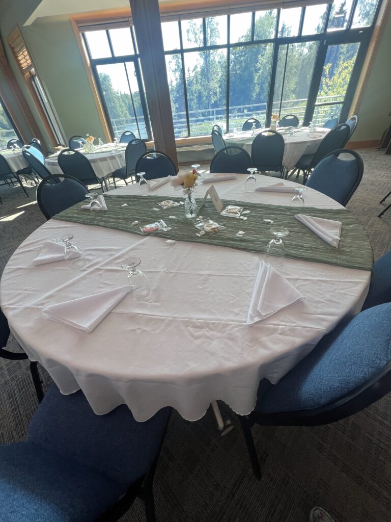 Our facility can comfortably host up to 175 guests. For pricing details, please contact us at 907-776-7654 and ask for our ‘facility rentals’ coordinator. We look forward to helping you create a memorable event!